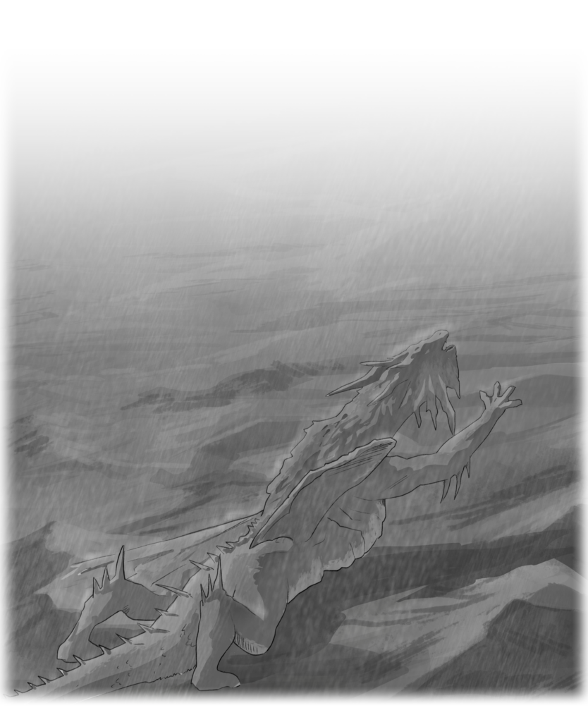 The excited Zym then proceeds to chase a nearby Zaphopper before Zubeia gathers him from the smaller creature, telling him to leave it be. Zubeia lets out a sigh as the sight causes her to reflect on the time when Rex Igneous accused Avizandum for tormenting humans as if they were ants, though she cannot deny that her mate enjoyed reveling in his victories and leaving the battered remains of human armies in his wake as tribute to his triumphs. Zym then learns from his mother that humans hated his father for his actions at the Border, and how that hatred took Avizandum from his family after it festered and took the form of a sharp spear. Zubeia wanted to keep Zym safe forever, but she knows that such instinct could consume, corrupt, and almost killed both her and her son, but she is grateful that both of them manage to survive. Zubeia acknowledges that she wants Zym to grow up in a better world and musters her courage before she takes him to Avizandum's petrified body.
