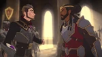 1000 years later, King Harrow of Katolis and his advisor, the dark mage Lord Viren, yet again become the enemies of Xadia, as they have slain the King of the Dragons, Avizandum, and supposedly destroyed his only egg, the future Dragon Prince.[3] In retaliation, Xadia sends a group of elven assassins out to assassinate both King Harrow and his son, Prince Ezran. One of these elves, Rayla, decides to act on her own after struggling to carry out her mission. During a chase through the castle, Ezran, his older half-brother Callum, and Rayla discover the unharmed egg of the Dragon Prince and decide to take on the mission of returning the egg to Xadia.