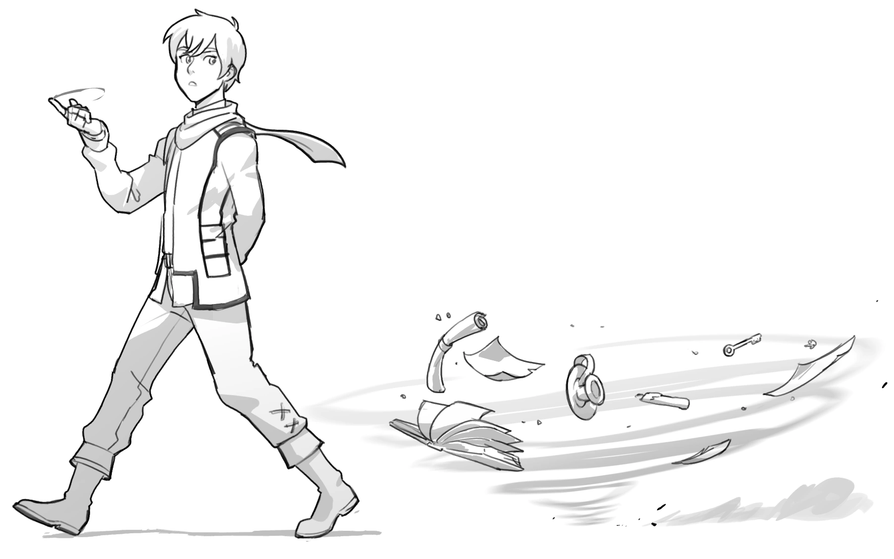After Callum inherits the title of High Mage of Katolis, he enters Viren's secret chambers inside the castle in order to inspect it for dangerous items and to clean it for his use after it had been abandoned for months. By casting the spell "Angustiae Lautus", he conjures a small whirlwind to assist him, which he dubs "Angus" as a play on words of the incantation.