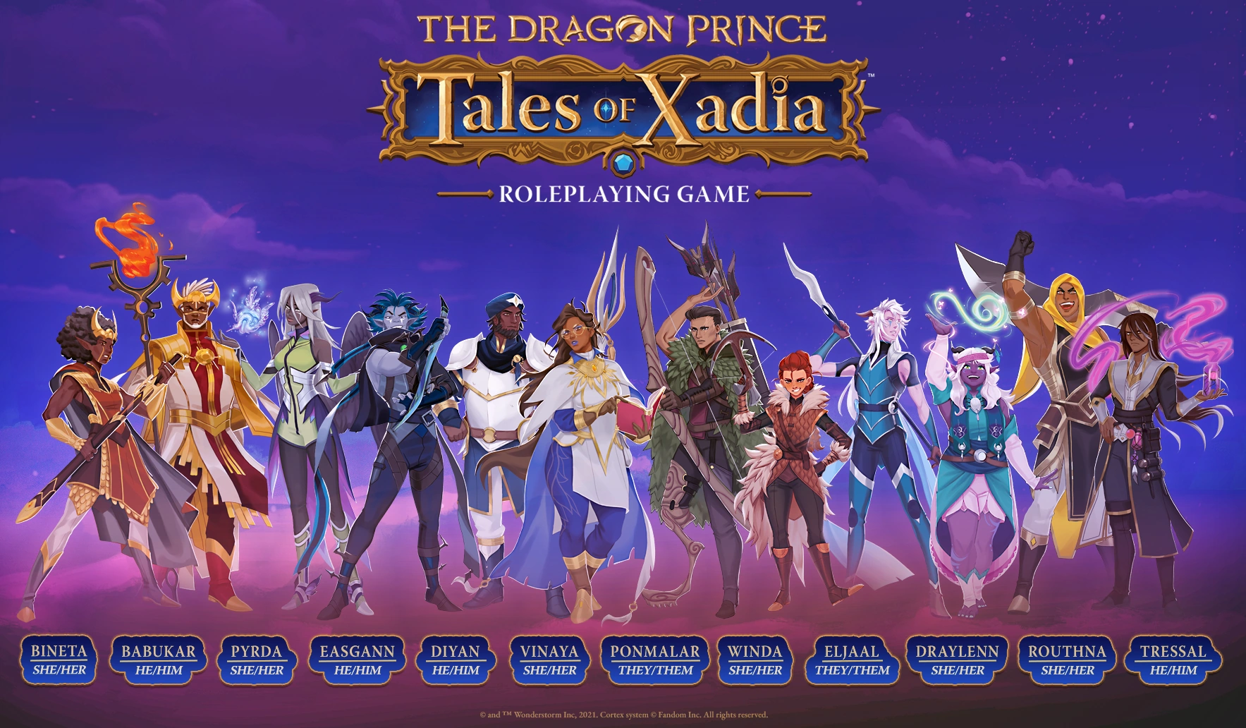 Tales of Xadia is a tabletop roleplaying game using the award-winning Cortex platform. Players will take on the role of characters they create to bring their own epic quests to life with friends, using character sheets and a dice pool mechanic to enhance their story. The experience consists of the core roleplaying game, a digital companion and toolset, a community content creation and sharing platform, and an organized play program that will give fans the opportunity to participate in a connected, living story with other players around the world that will directly tie in with the action of the show.[3]