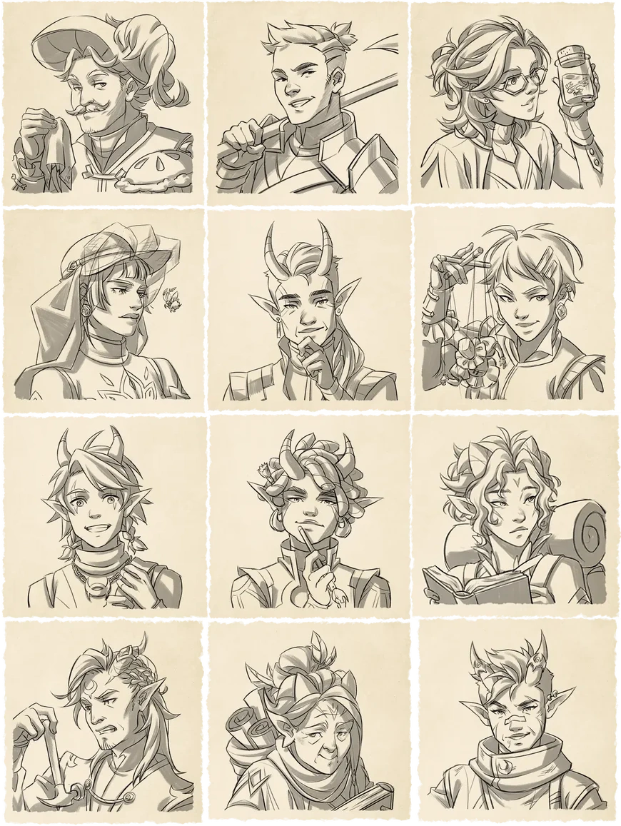 Players may create their own characters or make use of twelve pre-existing Player Character sheets provided by the handbook. Premade Player Character race choices include elves connected to the Primal Sources of magic or members of the Human Kingdoms.[3]